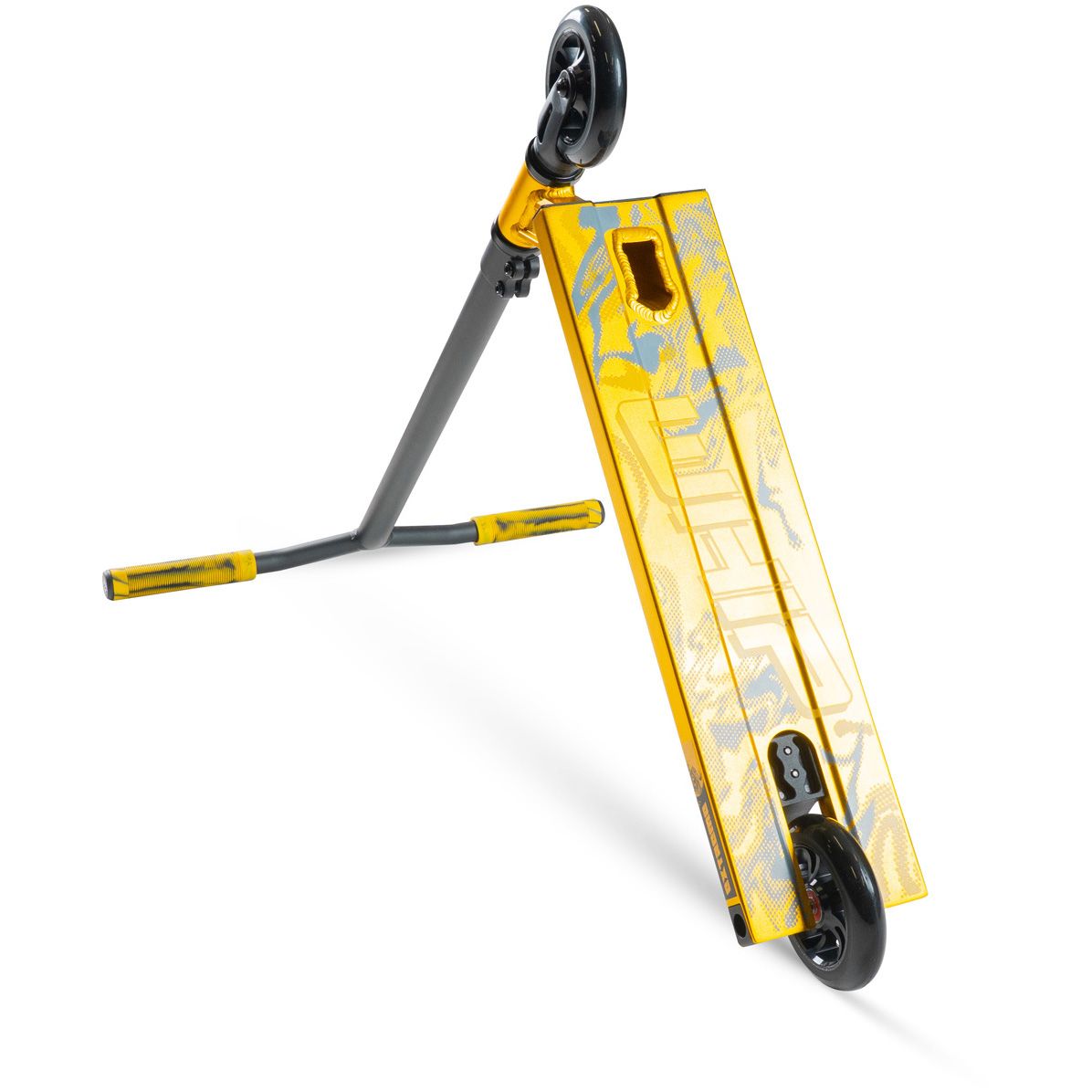 De Madd Gear Pro Whip Extreme Gold is een stunstep met een uitstekende controle, speciaal voor de jonge freestylers. De step heeft een maximale belasting van 100kg en is geschikt vanaf ongeveer 8 jaar.
